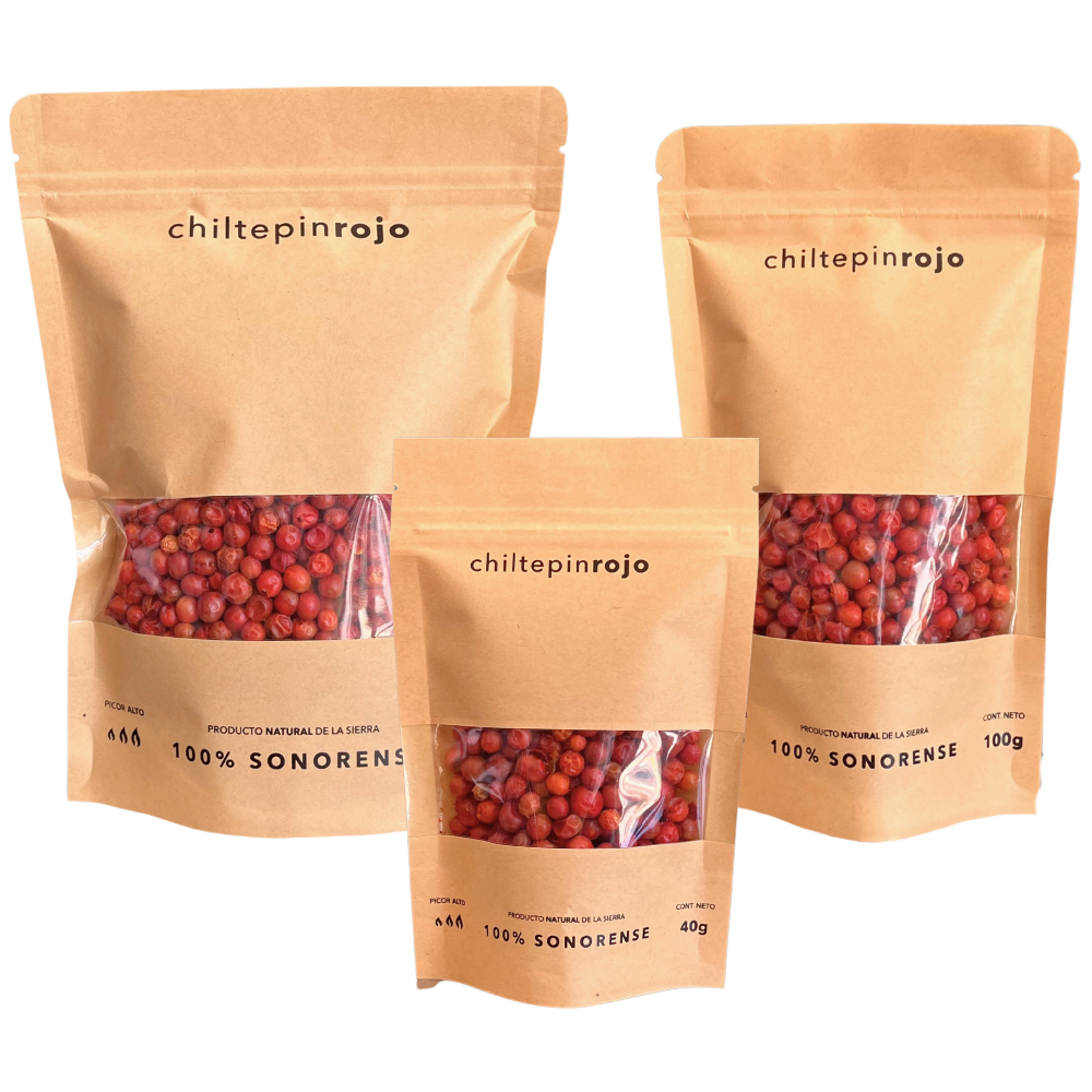 Cultivado y cosechado por la tradición familiar de tres generaciones de chiltepineros; que cada temporada seleccionan las mejores plantas para dar semillas de la mejor calidad, que logran darnos ese olor único de las tierras del río, un sabroso e intenso picor, y el rojo vivo y característico del verdadero chiltepin silvestre.